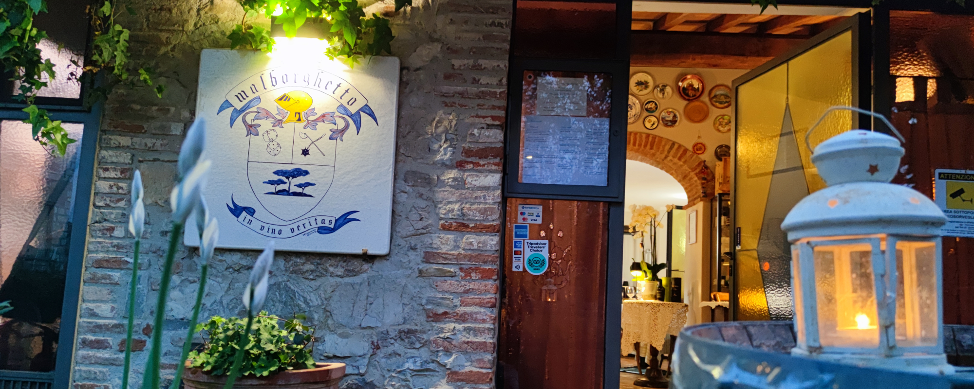 The restaurnat’s name, «Malborghetto», comes from the Renaissance Period where the word was used to indicate border outposts where evil doers and politicians too famous to be killed were sent. But in our era Malborghetto has no longer the old meaning: it rather is a place where we are always welcomed with a smile, in which we can find, mixed, tradition, conviviality and quality, all enclosed in an intimate and familiar atmosphere •